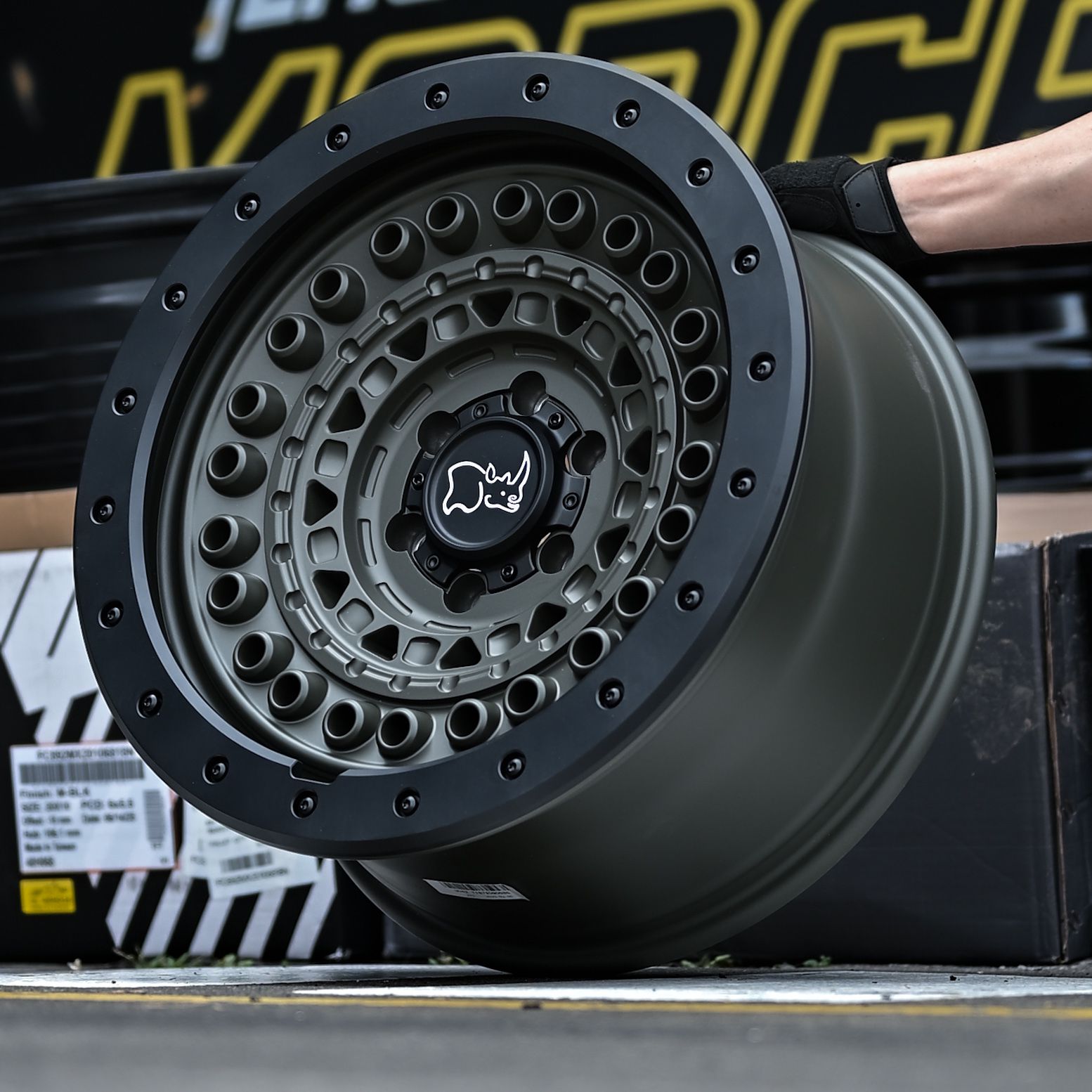SET DE 4 AROS BLACK RHINO BARRICADE 20X9 6X139 OD-GRN-BLK ET0 CB112